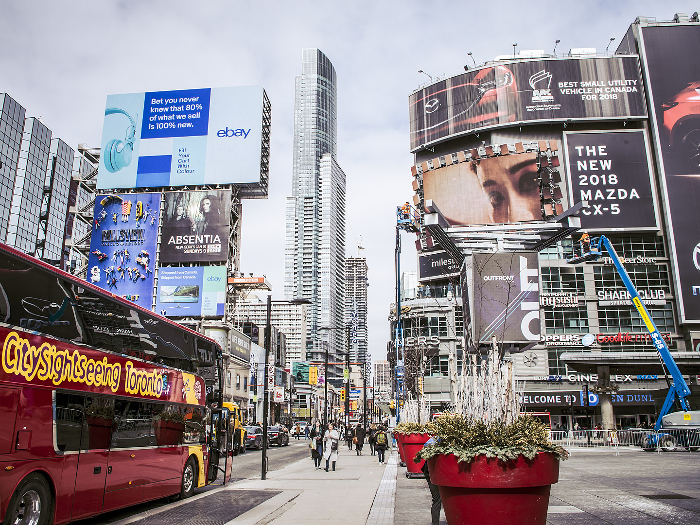 We found Yonge-Dundas Square quite easily. It’s only five minutes in a straight line from the coach station. I’d read that it’s ‘just like’ Times Square and it’s definitely similar, but it’s not Times Square. Nor should it be! That also comes with a plus side โ€“ there were no scammers or salesmen.