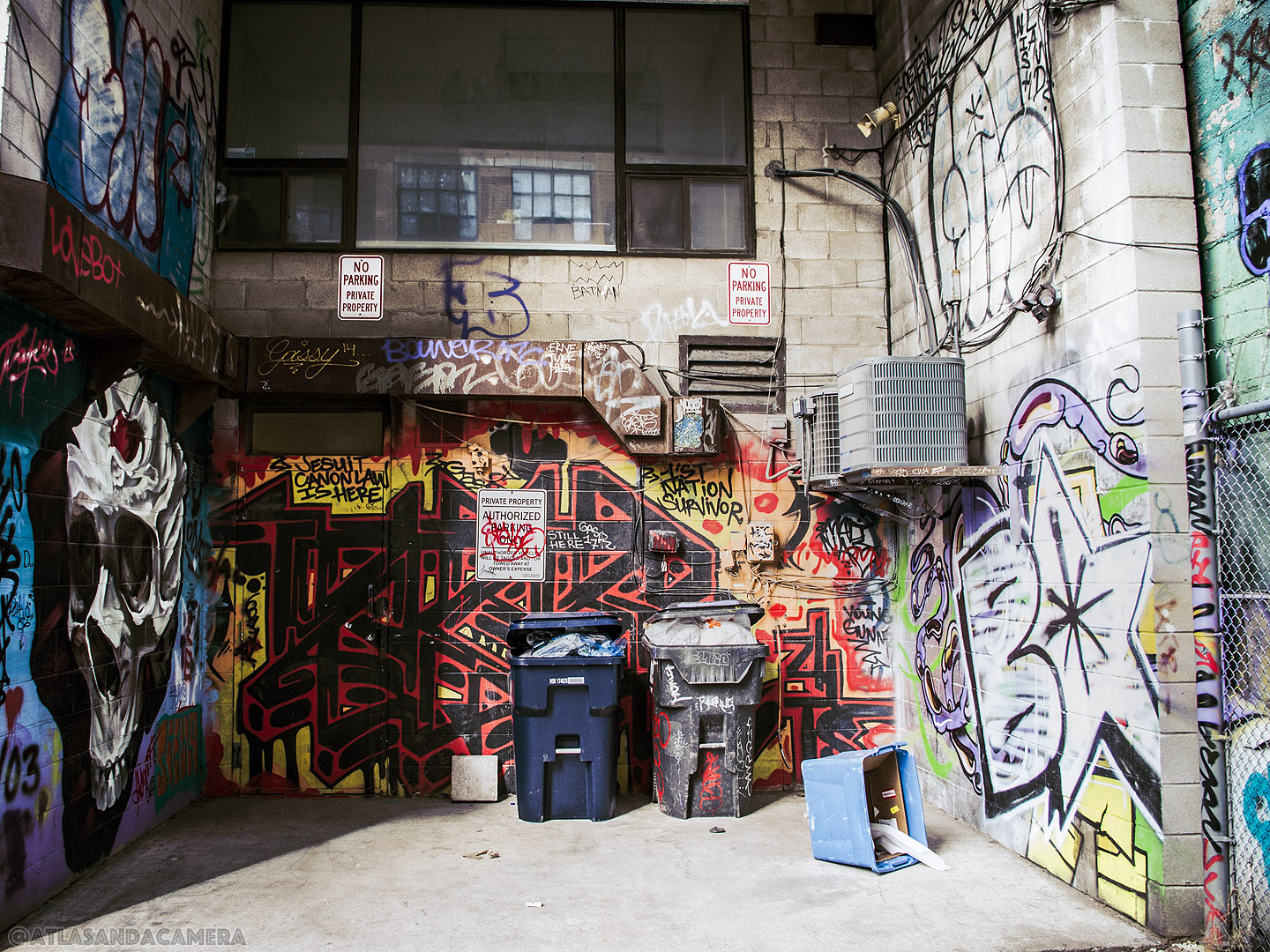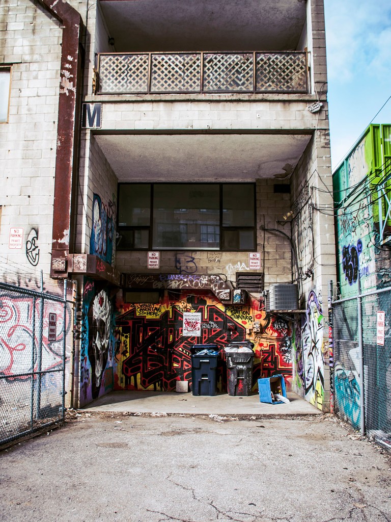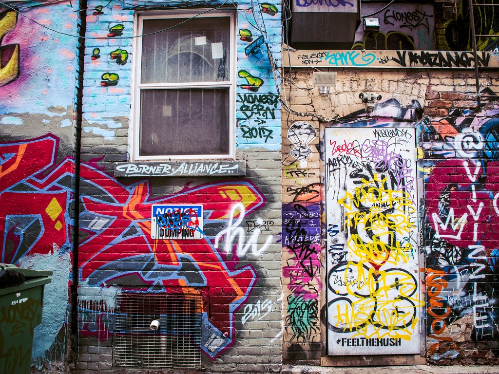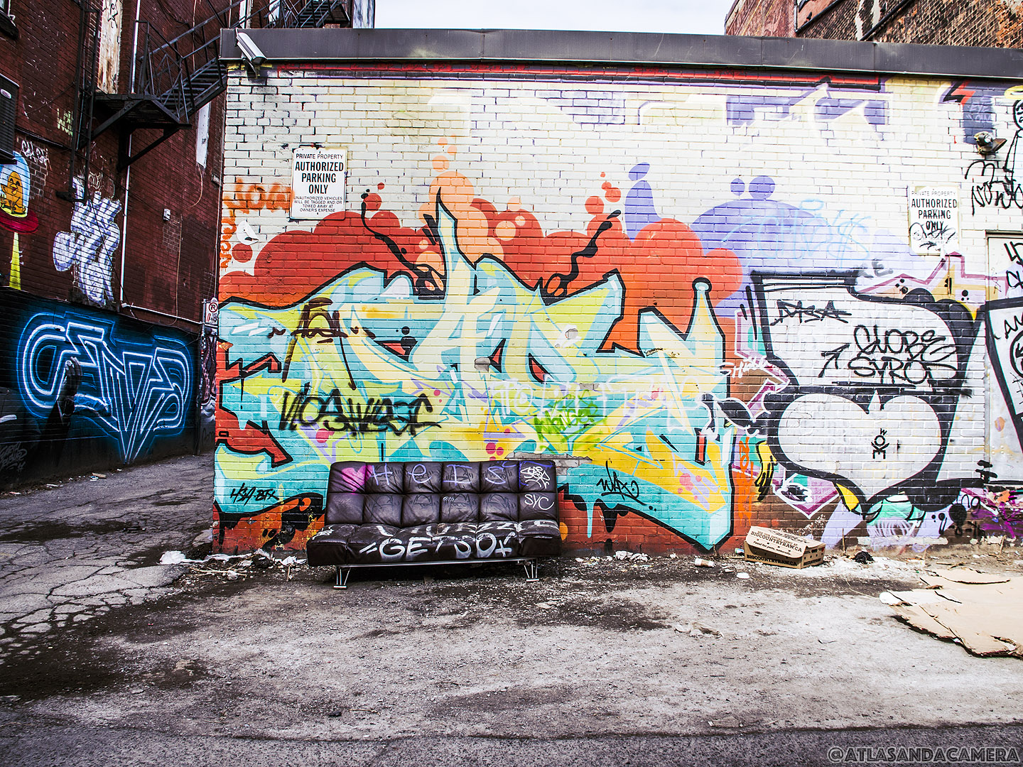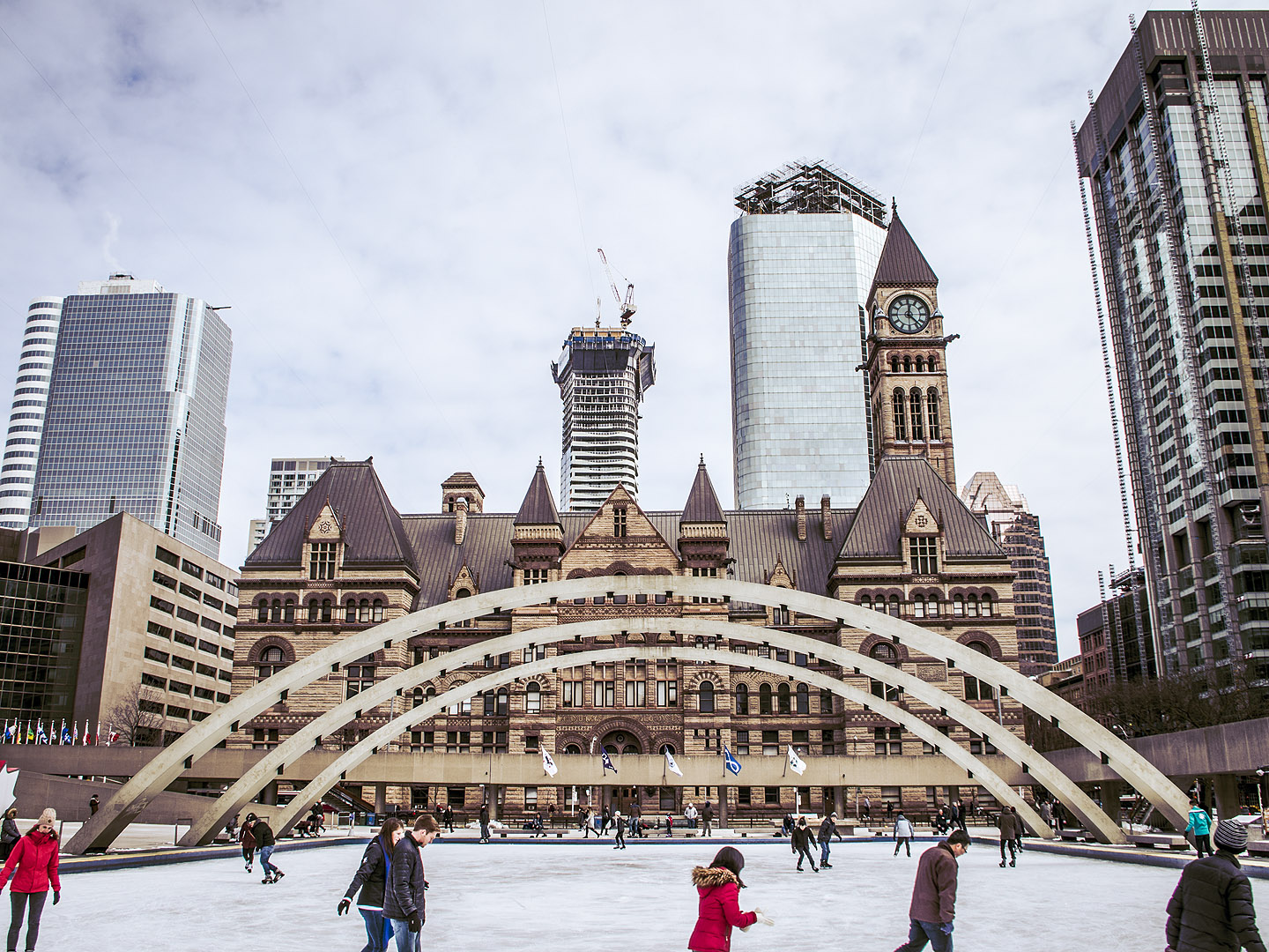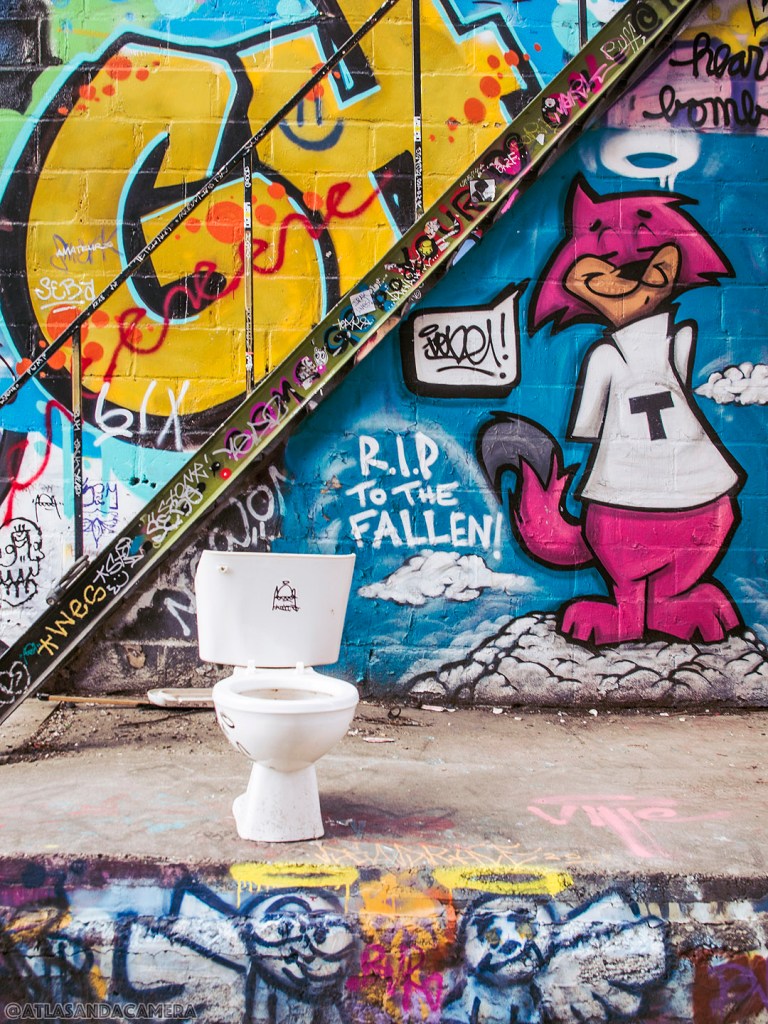 Our next stop was Graffiti Alley. On our way, we accidentally found the Toronto sign in Nathan Phillips Square. The square was full of ice skaters. Torontoโ€™s clean streets were more akin to a British city than anywhere weโ€™d been in America โ€“ a sort of cross between the two. The CN Tower rose tall above the city, visible from every gap between buildings.