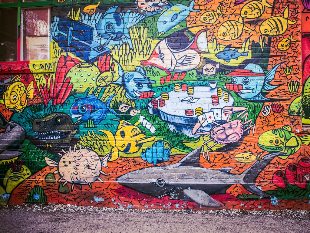 I didnโ€™t expect much of Graffiti Alley, but it was actually one of my favourite parts of the day. Neon colours and art from surreal to political filled every inch of the surrounding walls. I would like it, wouldn’t I? I’m a Falmouth graduate. Seriously, though, the artists who did this are incredible. It’s not easy. I did some spray painting as a teenager and the people who now live in our old house still hide the bins.