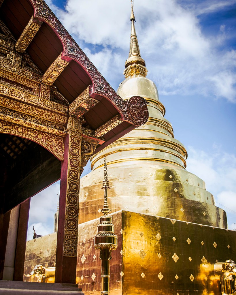 Wat Phra Singh Woramahaviharn (วัดพระสิงห์วรมหาวิหาร) is one of Chiang Mai’s most famous and sacred temples thanks to the Phra Buddha Sihing statue it enshrines. Built in 1345 and fully restored in 2002, it’s a beautiful temple complex with striking examples of Lanna architecture.
