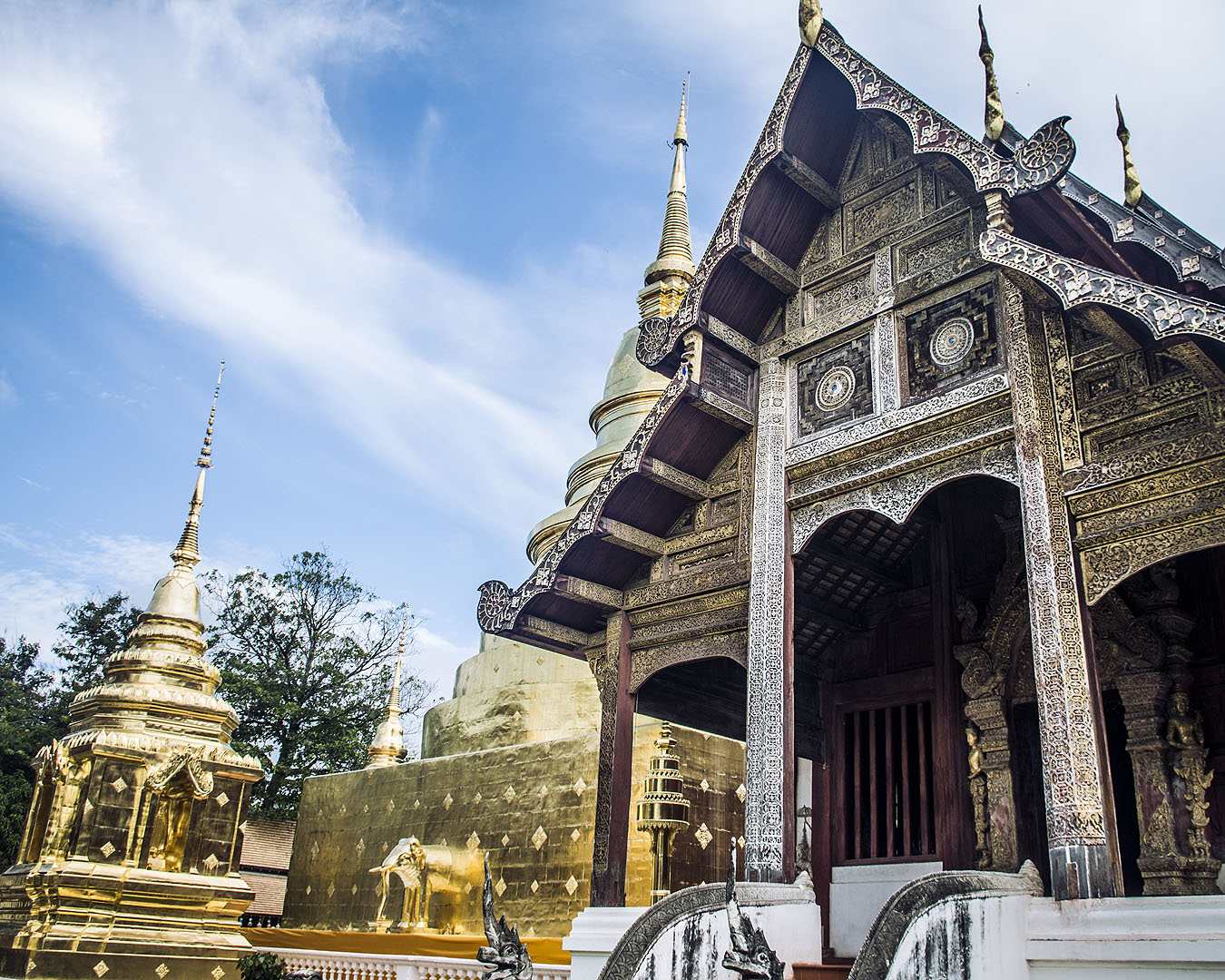 Wat Phra Singh Woramahaviharn (วัดพระสิงห์วรมหาวิหาร) is one of Chiang Mai’s most famous and sacred temples thanks to the Phra Buddha Sihing statue it enshrines. Built in 1345 and fully restored in 2002, it’s a beautiful temple complex with striking examples of Lanna architecture.