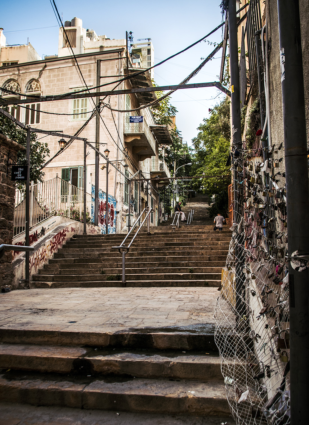 At one turn were the St. Nicholas Stairs. With 125 steps, this stairway is the longest in the Middle East. It connects Rue Gouraud with Rue Sursock. We were actually looking for the ‘let’s think positive’ stairs, but we were happy with these!