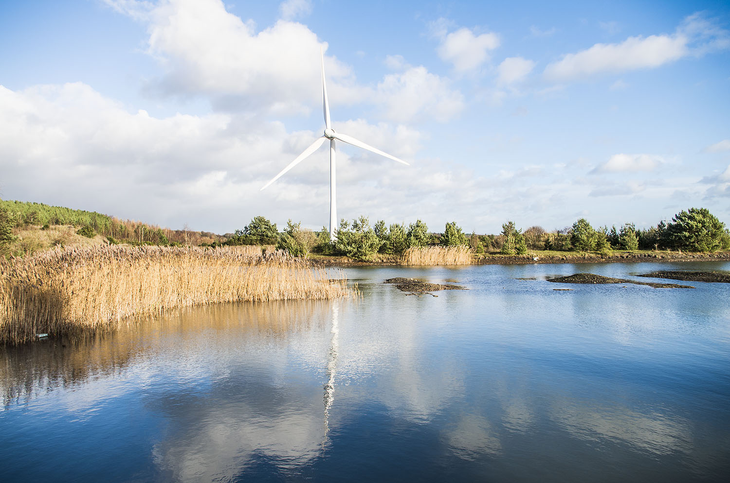 The waste water from the pit would have filtered from this lake into these small ponds, which are near the wind turbine, before joining the River Leen.