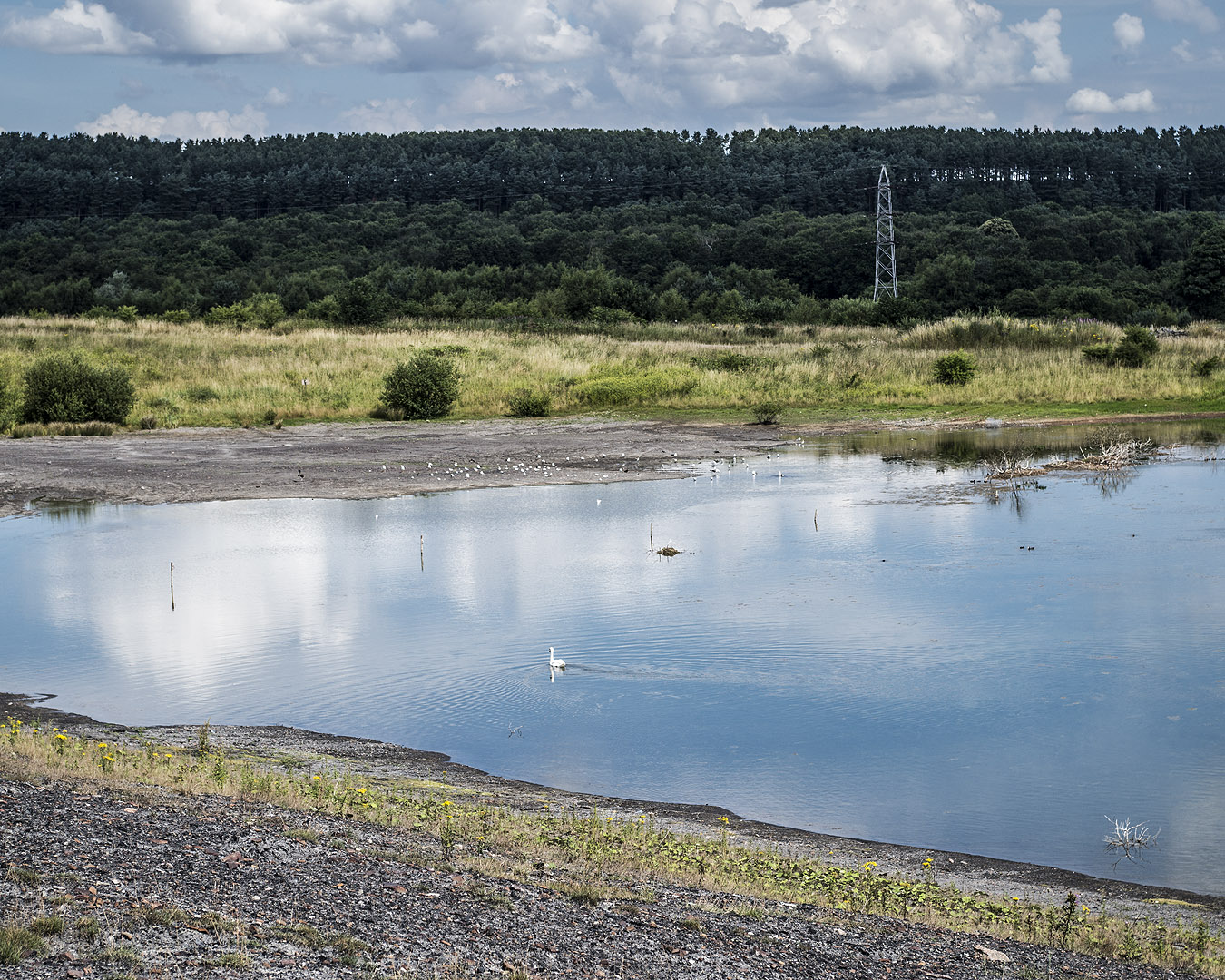 When you climb the hill past the top half of the fishing lake, you’ll see this one. In recent years it has unfortunately been fenced off because dirt biking and dog attacks were affecting the wildlife, but there’s still a great view. Back when the collieries were active, the clay and metals in the waste water would have begun to filter by the time they reached this lake.