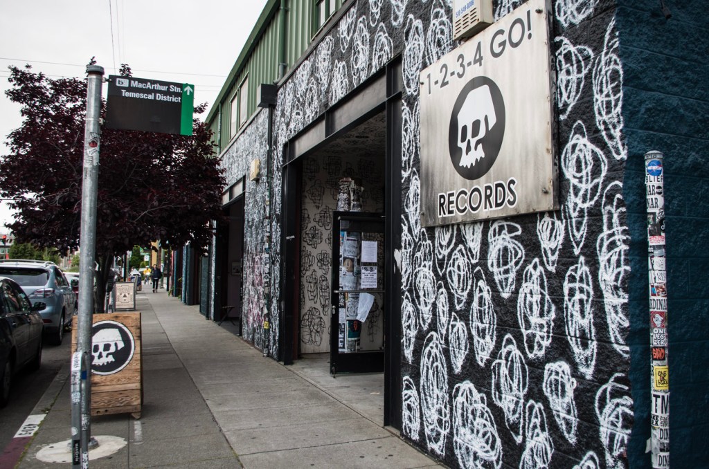 Opposite the shop is 1-2-3-4 GO! Records, where Billie Joe built the stage with one of his sons, and Green Day played an early show for ¡Uno! ¡Dos! ¡Tré! (billed as a ‘Bay Area Music Fan Appreciation Event’). It also hosted the pop-up shop for their Oakland Coliseum show. They had Insomniac on cassette and I was tempted, but I went for a shirt instead.