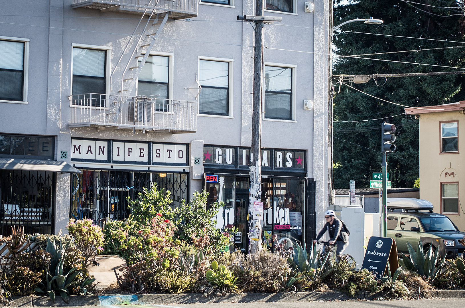 We walked up Telegraph Avenue (the Avenue in ‘Stuart & the Ave.’) until we came to 40th Street. There we found Broken Guitars (now Oakland Guitars), a guitar store that was co-owned by Billie Joe and tour manager Bill Schneider at the time.