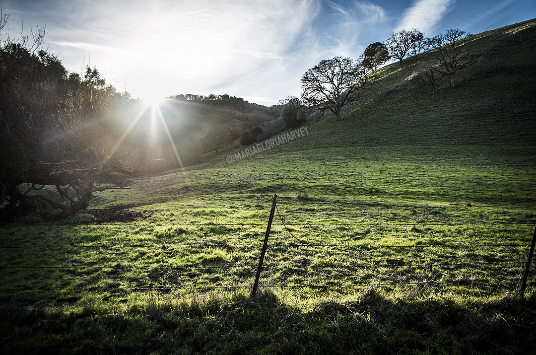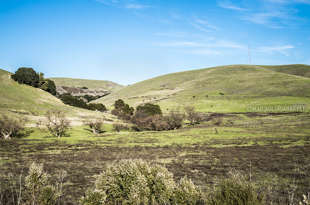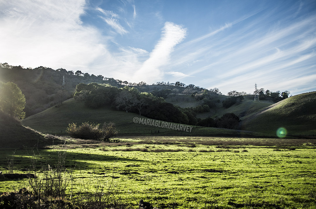 Here, away from the highway, only our footsteps broke absolute silence. Afternoon sunlight glowed on the green hills. It was easy to see why this was such a beloved refuge for the band; for anyone thinking ‘gotta get away or my brains will explode.’ The clear air, the silence, the presence of only grazing animals – it was reassuring.