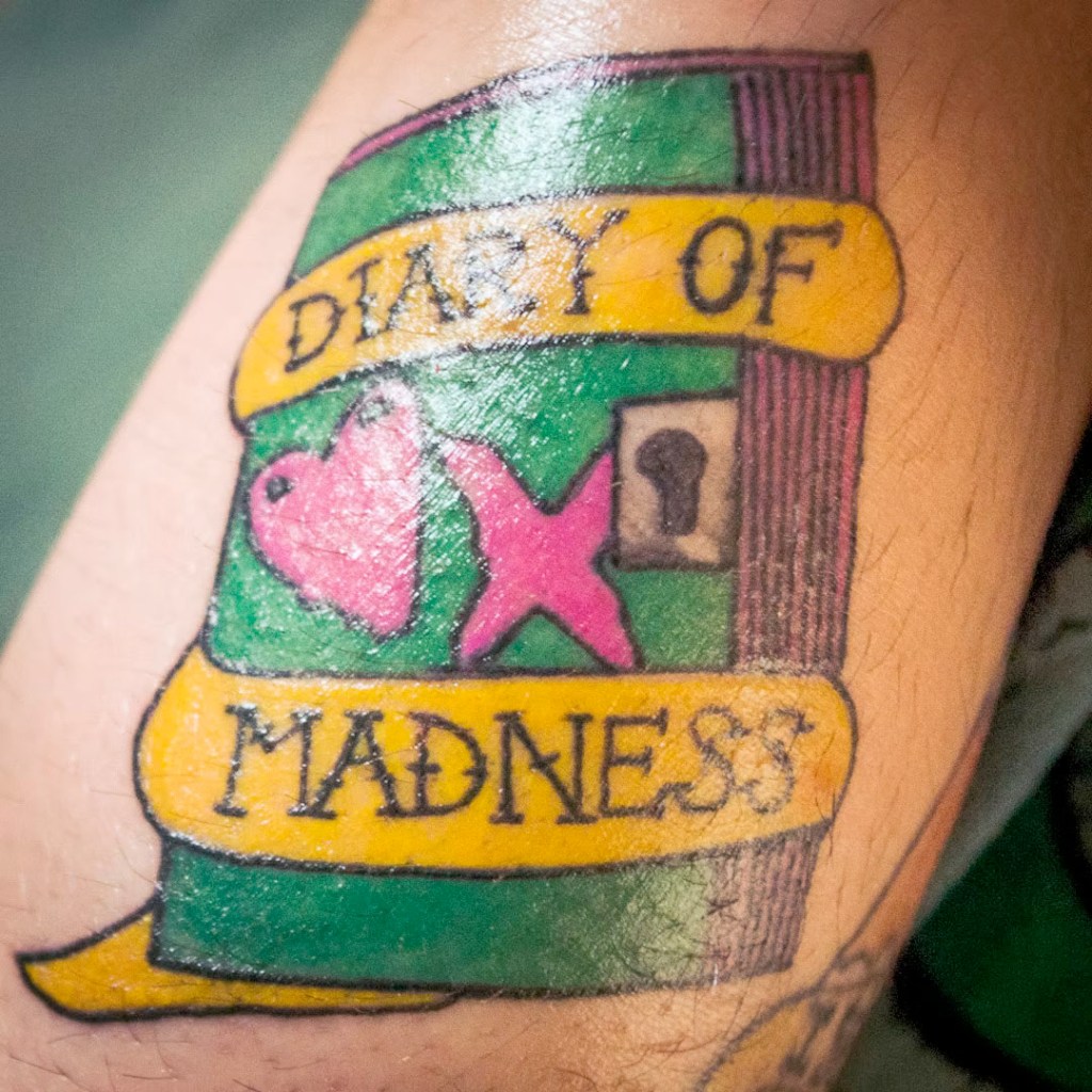 This line was special to me for a few reasons. I adore the Love is for Losers album and ‘Body Bag,’ the song this lyric is from. The past decade was madness – going to Costa Rica to see a band, American Idiot on Broadway, sleeping on streets in the snow, getting onstage in a random city in Illinois… and my ADHD was misdiagnosed as borderline personality disorder, so I also spent that decade being ridiculed for ‘madness’ by everyone but those who actually knew me. It’s not going away, so I might as well accept myself as I am. Finally, I did literally keep a ‘diary of madness’ when I got involved with a famous person, wondering if I was going insane and imagining things. The entertainment industry does that. No matter what the future holds, they were all defining points in my life. Oh, and I’d been wanting that ¡Uno! ¡Dos! ¡Tré! heart and cross tattooed.