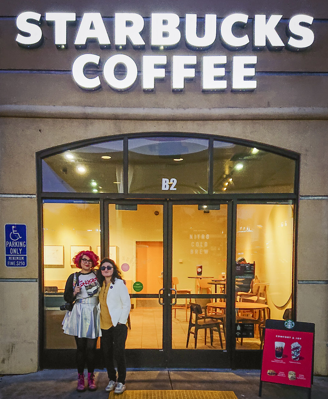 While my mum and Annabelle were in line at Starbucks the next day, a lady complimented my leggings and backpack. I thanked her. She asked if I had a cell phone. When I said yes, she asked me to post on Facebook that it was a beautiful morning in Oakland, then installed her ‘brain’ so I could take said ‘brain’ back to England.