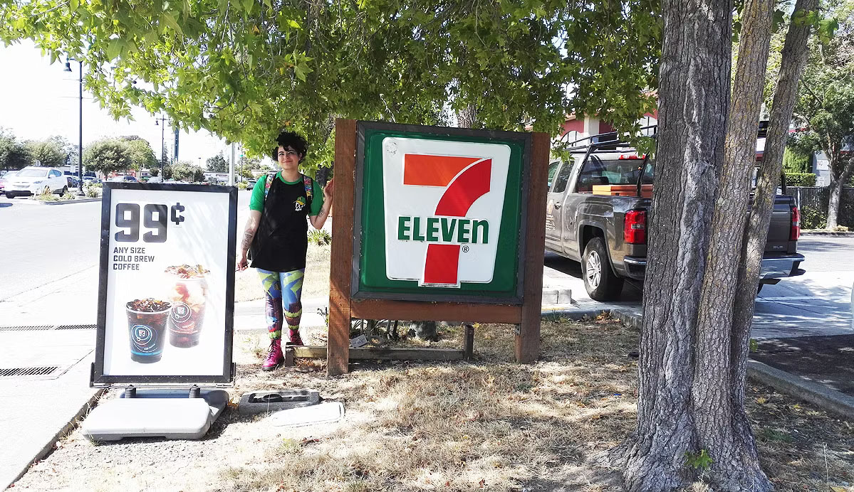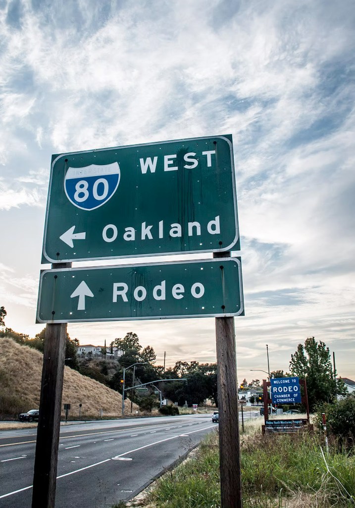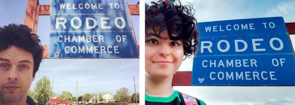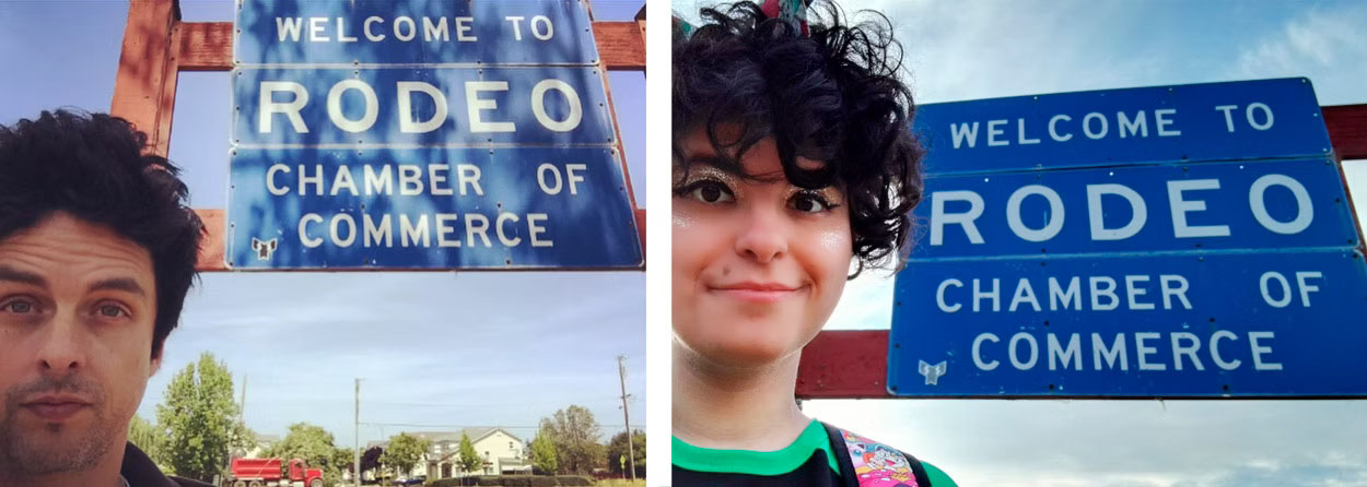 We reached Rodeo, where Billie Joe grew up and Mike lived for a while in the Armstrong home. Parking on a quiet suburban street where a woman smiled as if she was used to Green Day fans, we showed Claudia the Rodeo sign where Billie took a selfie.
