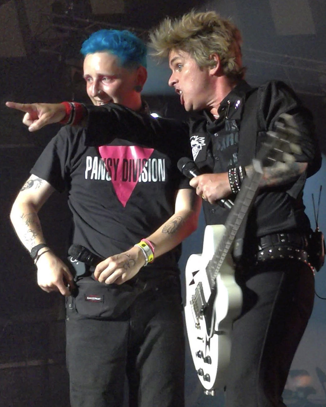 Billie hugged him with the biggest smile. Joy radiated off both of them. Honestly, it was one of the best and most energetic fan performances of Know Your Enemy that I’ve ever seen. It was especially incredible, even for me as a queer woman, that Adam got up there – that Billie Joe chose him without hesitation – wearing a Pansy Division shirt and generally being so proudly queer during Pride Month. I’m sure there were some closeted kids in that crowd who left feeling seen and inspired.