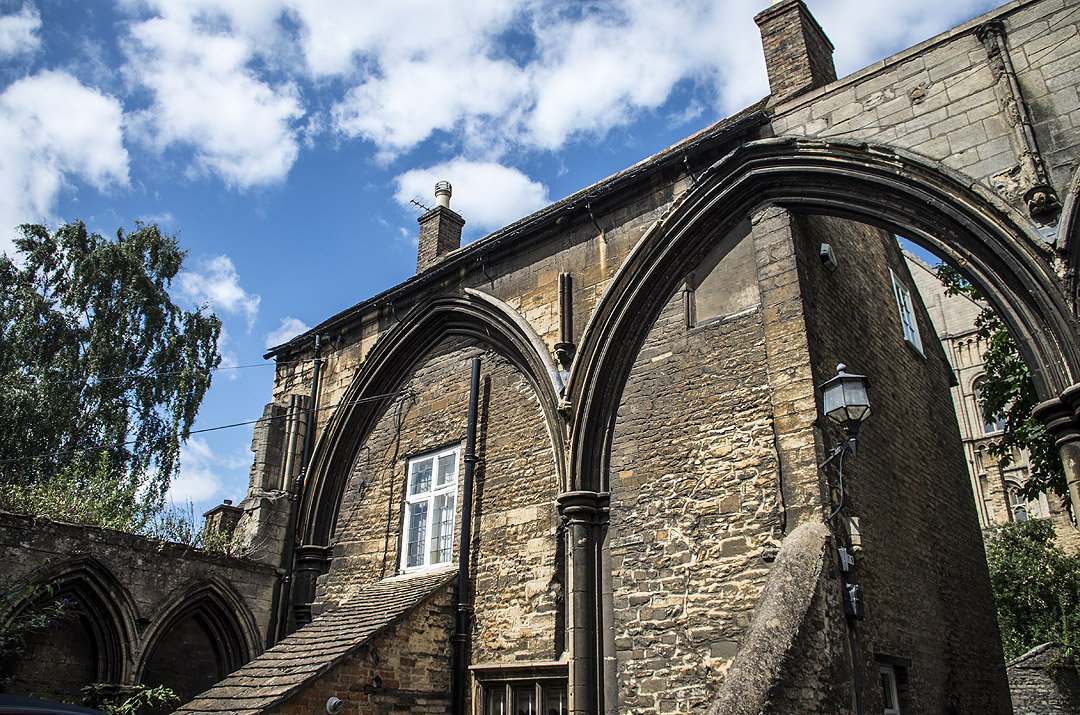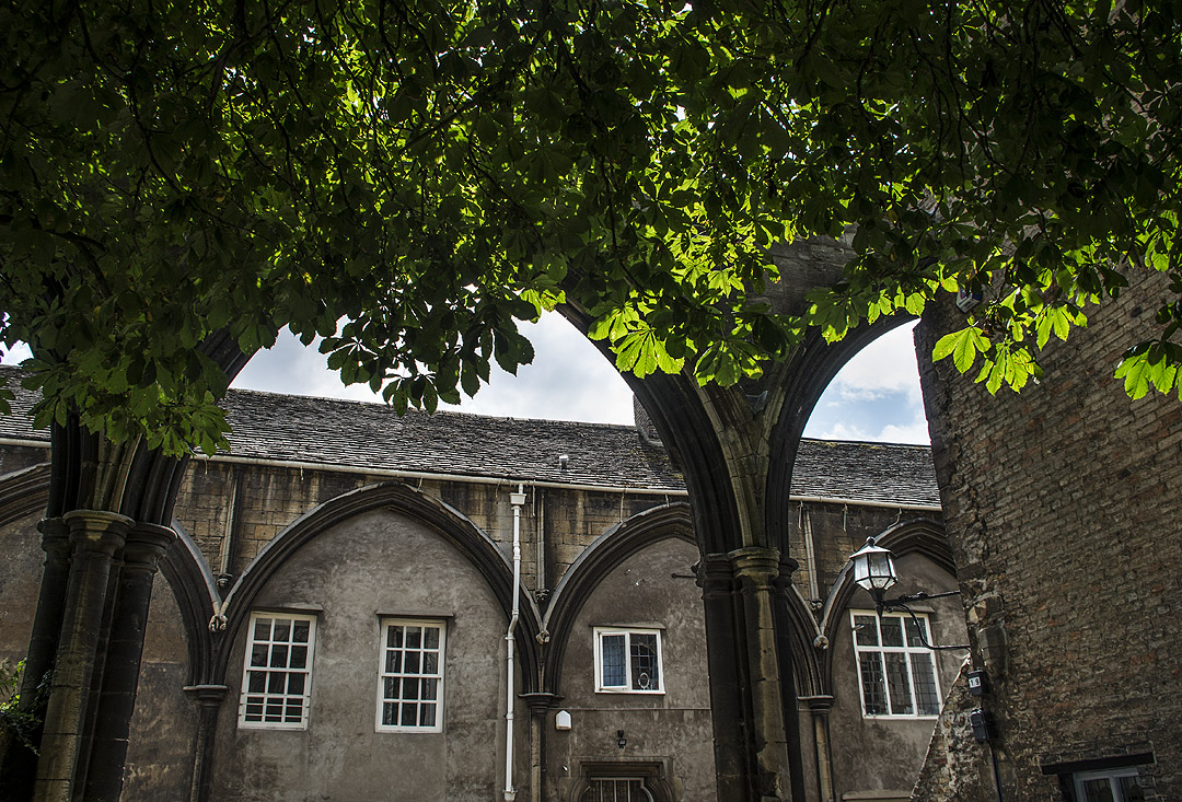 Don’t hurry off after visiting the cathedral, because the surrounding streets are equally beautiful. The arches are the remains of the church hospital. The orange building is Table Hall. There are some historic cottages on Dean’s Court. In the summer, there are hydrangeas outside some of the other old buildings.