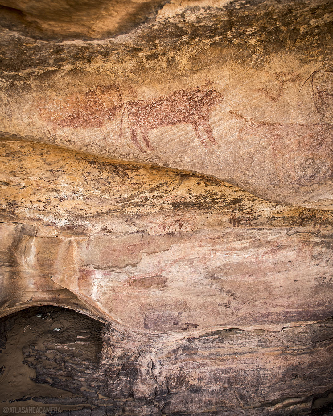 A bumpy detour will take you to the Agrour Amojjar Peak (690m/2264 ft above sea level), where cave paintings can be found in a small enclosure. They’re over 5,000 years old and feature dancers and animals. Back when they were painted, the area was green, fertile and populated.