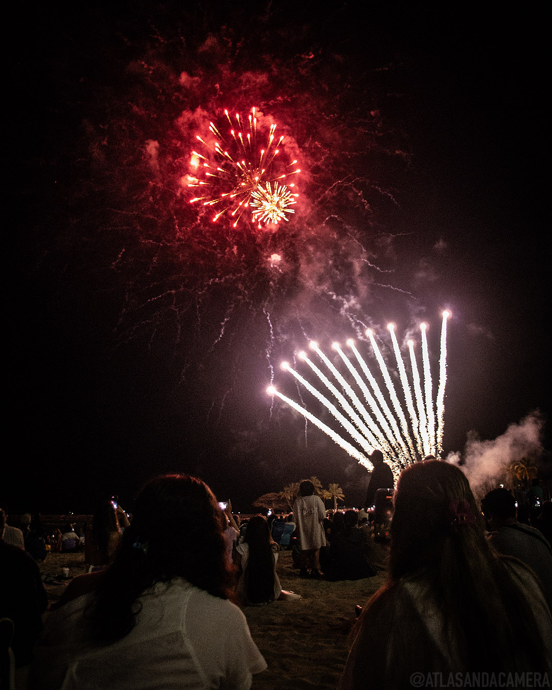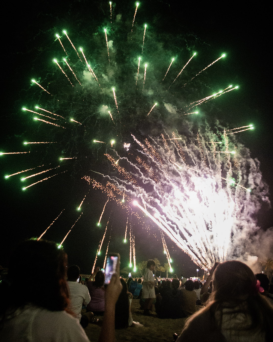 I saw the fireworks on my last day on Oโahu. I’d got up at 4 am to see the sunrise on Sandy Beach, so I was going to go to bed early, but a group at my hostel was going to see the fireworks. They convinced me to go with them. We walked to Fort DeRussy Beach Park. It was crowded and honestly, it didn’t look like it was going to be a good time, but we found spots and had a good laugh playing charades and impostor as the sun set (I wasn’t very good at charades, but I made a good impostor).