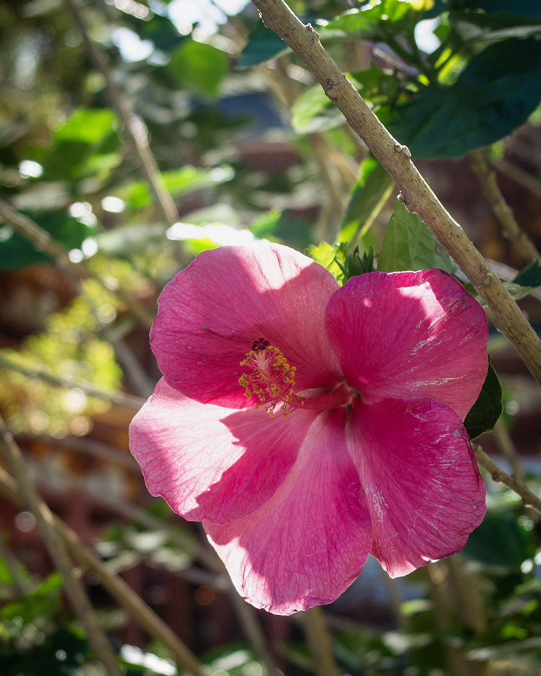 The temple is surrounded by beautiful greenery. Look out for hibiscus flowers and hau trees.